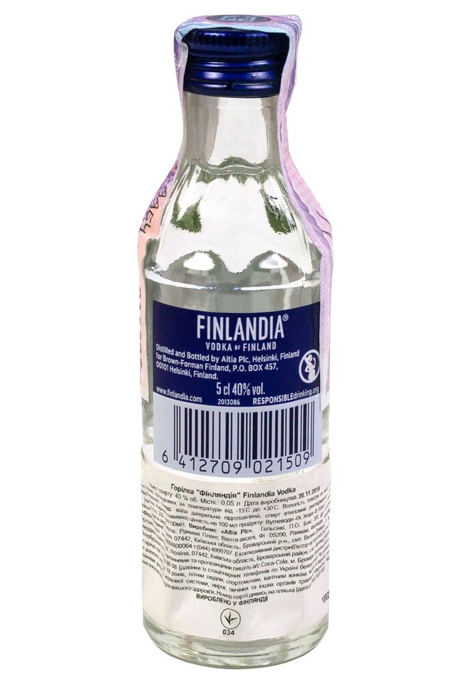 Производство: "Finlandia" производится в Финляндии, стране, известной своими природными богатствами и чистыми водными ресурсами. Вода для водки добывается из глубоких артезианских колодцев, а зерно используется высшего качества. Процесс дистилляции проводится несколько раз для достижения максимальной чистоты и мягкости.