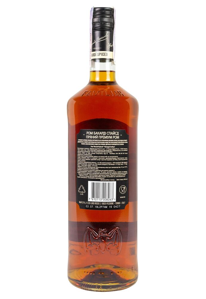 Bacardi Spiced создан из превосходного сахарного тростника, который выращивается на островах, и обладает неповторимым вкусом и ароматом. Этот ром проходит через определенные выдержки, в ходе которых приготавливаются продукты с пряными оттенками и нежным ароматом карамели.