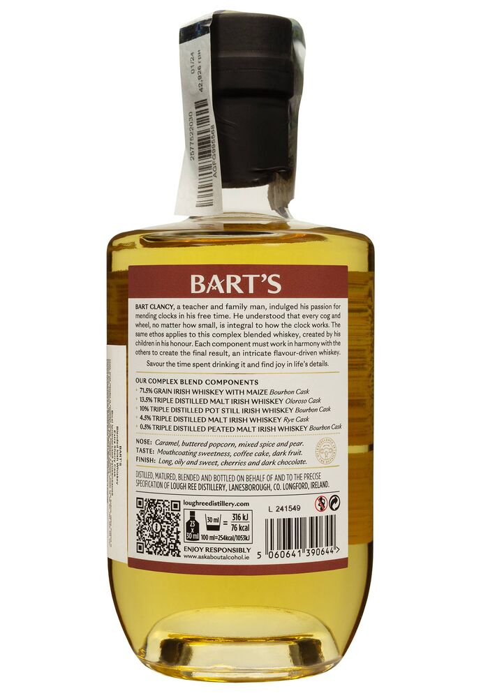 Bart’s XS Edition — эксклюзивное издание от ирландской винокурни Lough Ree, отражающее инновационный подход к традиционному искусству производства виски. Этот виски посвящен Барту Клэнси, человеку с утонченным вкусом и любовью к тонким деталям.